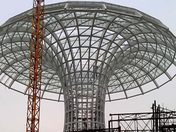 二、球形网架结构因其结构新颖,受力合理,自重轻、用钢量低等优点。如大型体育场馆球形和田螺栓球网架、公共场馆球形网架、电厂和田螺栓球网架、水泥工业球形网架、仓储物流球形网架、和田干煤棚工业球形网架、和田收费站和田加油站球形网架、展览中心、影剧院、商场、航站楼、候车厅、工厂和田车间、仓库、电视塔等球形螺栓球节点网架。国内球形网架结构主要分为:和田焊接球节点网架及螺栓球节点网架两种。螺栓球节点网架其构件工厂内加工量较大,现场安装便捷,适用于现场工期紧,和田施工条件、用电量受制约,网架形状复杂、和田杆件定位困难的异形结构。螺栓球节点球形网架系统基本由和田杆件、螺栓球、支撑支座等组成。按照节点形式可分为交叉和田桁架体系、四角锥体系、三角锥体系等。支撑方式多为固定支座支撑。对于大面积、大跨度及有特殊受力或伸缩要求的网架结构可采用橡胶支座、滑移支座、球铰支座等支撑形式,以满足结构自身的受力稳定、均衡,便于内力释放等设计要求。